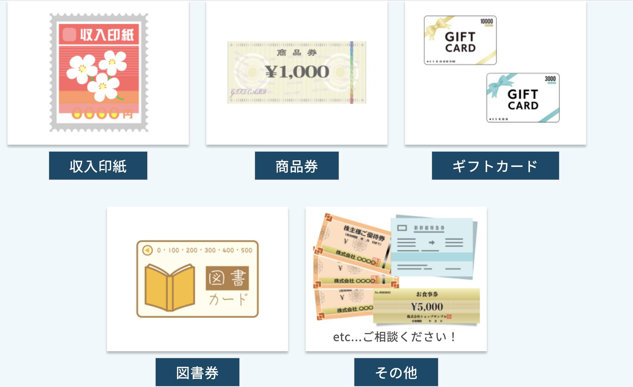 バックアップでは、様々な種類の商品券や金券を買い取ってもらえます。以下は主な買取対象です。