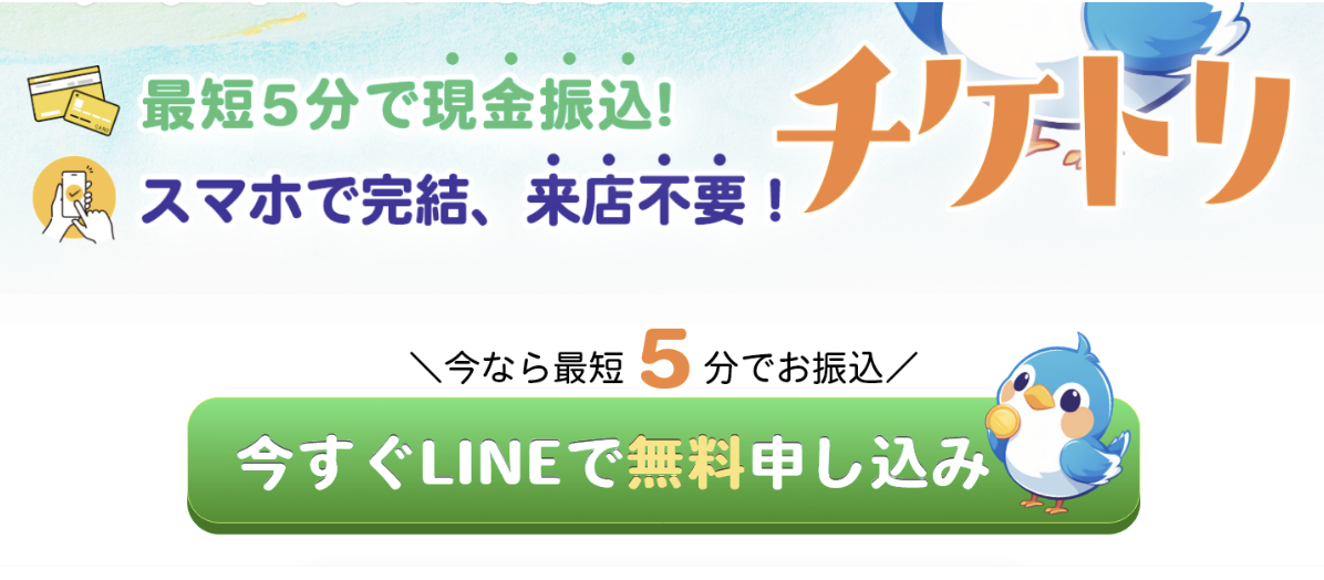 「チケトリ」は審査の早さと簡単さを売りにしている業者さんですが実際に現金が振り込まれる時間は書いていませんのでここで時間がかかってしまったら元もこもありません。。。