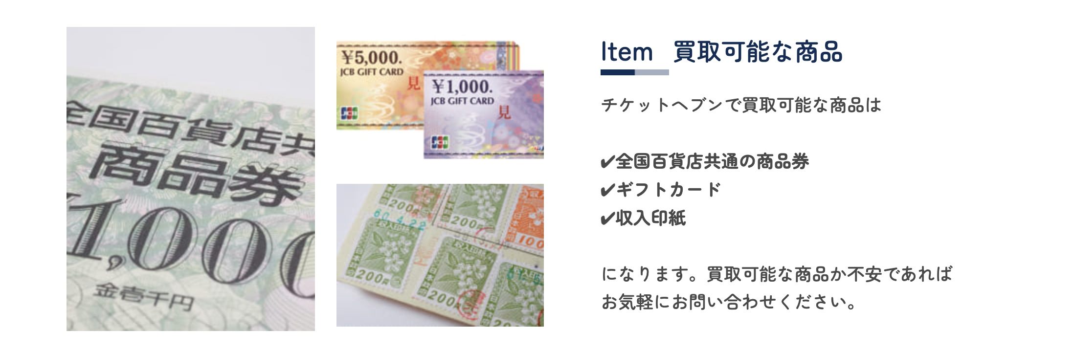 | 買取アイテム | ギフト券・商品券・収入印紙など | 同左 |