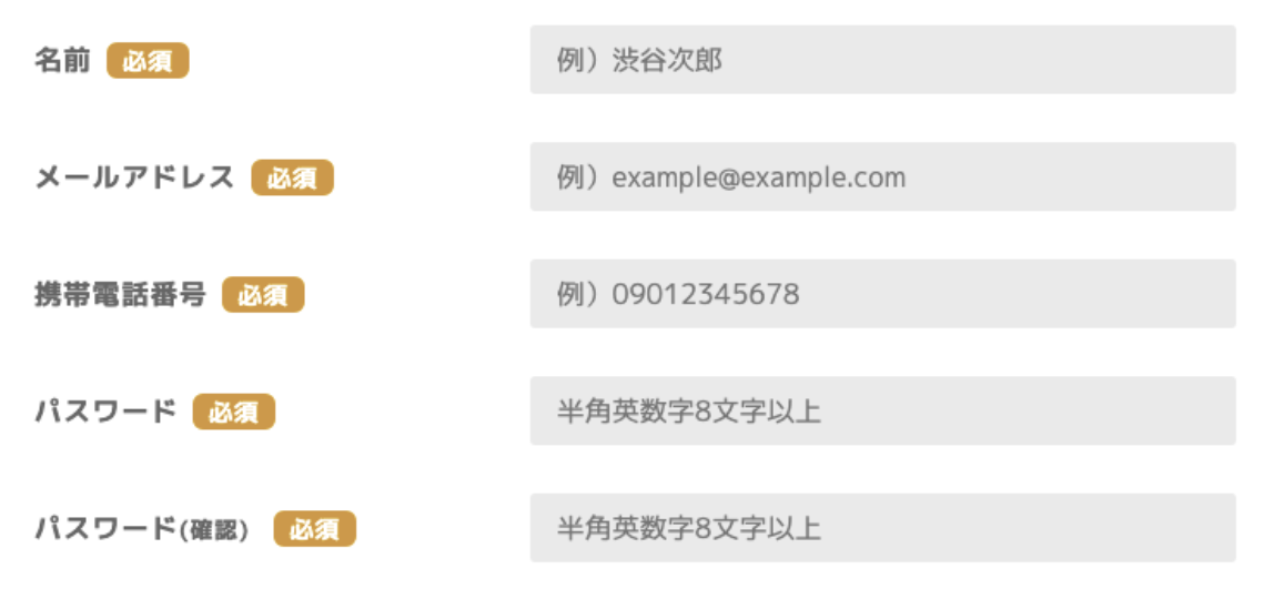 青いボタンの「お申込み」を押しましたら必要事項を記入する欄がありますので、名前や電話番号などの情報を入力していきます。