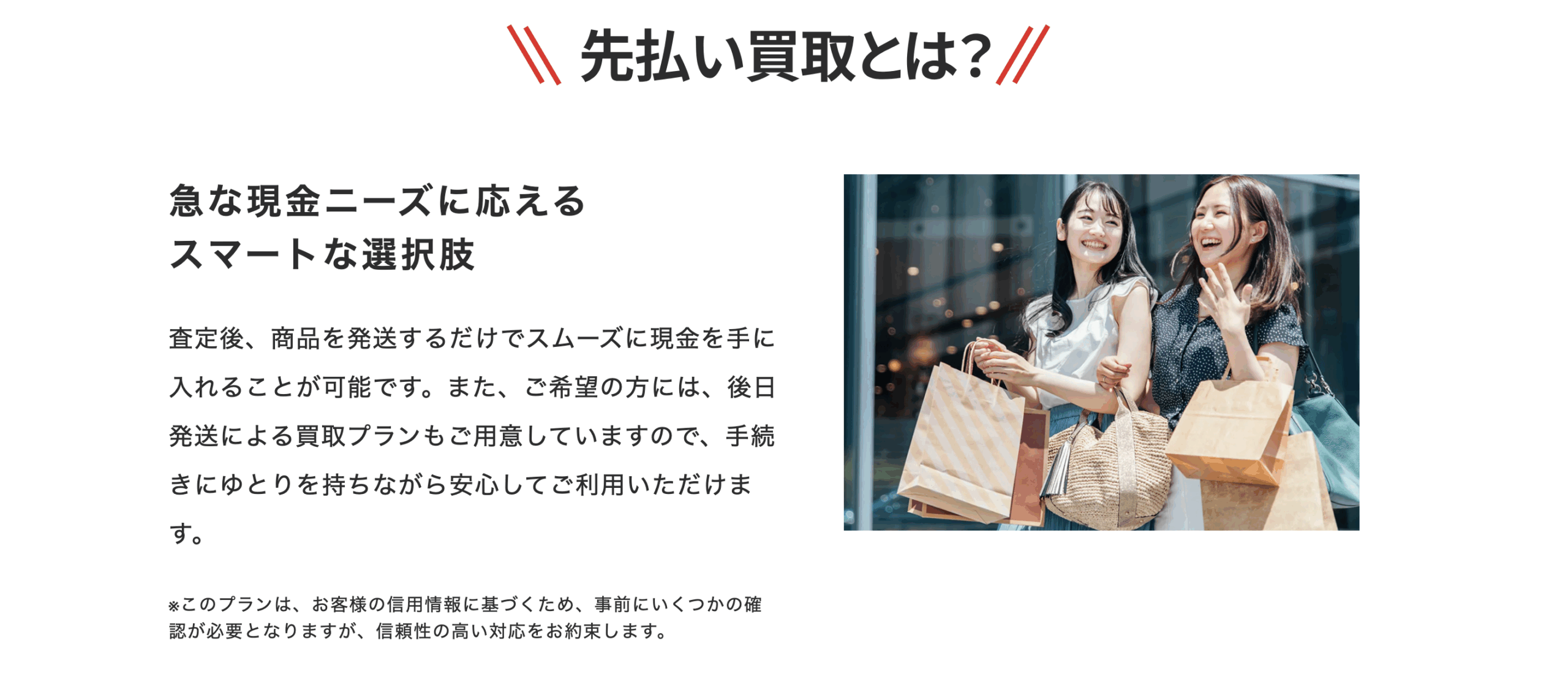 - 写真で査定→お金が先に入金→後から商品を発送